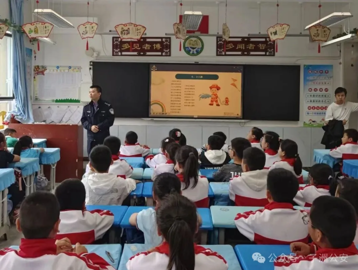 為進(jìn)一步筑牢校園安全防線,切實保障未成年人身心健康與合法權(quán)益,有效預(yù)防校園欺凌、消除校園消防安全隱患,4月16日,子洲縣公安局城關(guān)派出所民警走進(jìn)轄區(qū)實驗小學(xué),開展以普法護(hù)苗、安全同行為主題的法律法規(guī)宣傳活動,為全校師生送上一堂生動實用的法治安全教育課。